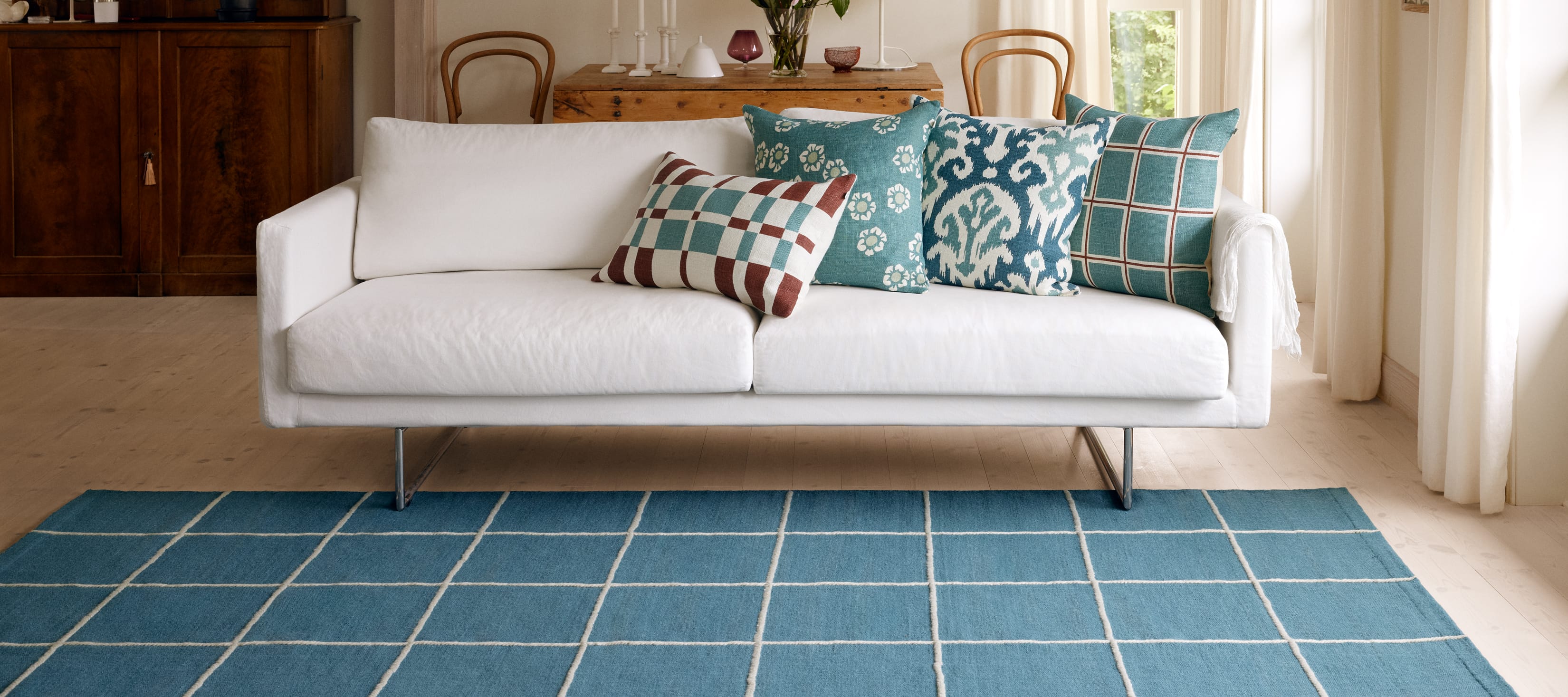 Handvävda mattor, handtryckta och handbroderade kuddfodral. Ett handarbete som kräver sin tid men också levererar en unik kvalité. Ett varumärke i skärningspunkten mellan skandinavisk design och indiskt hantverk.