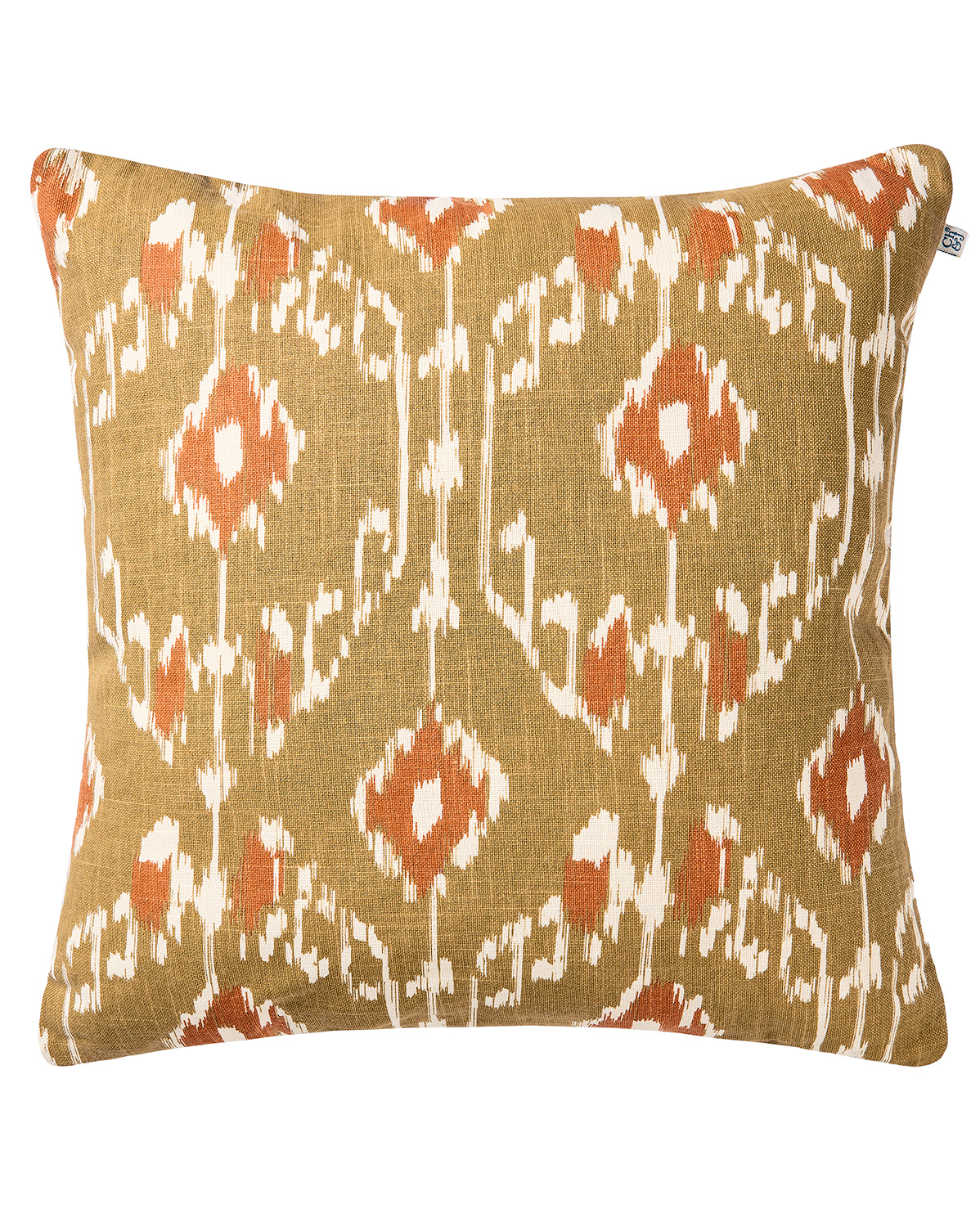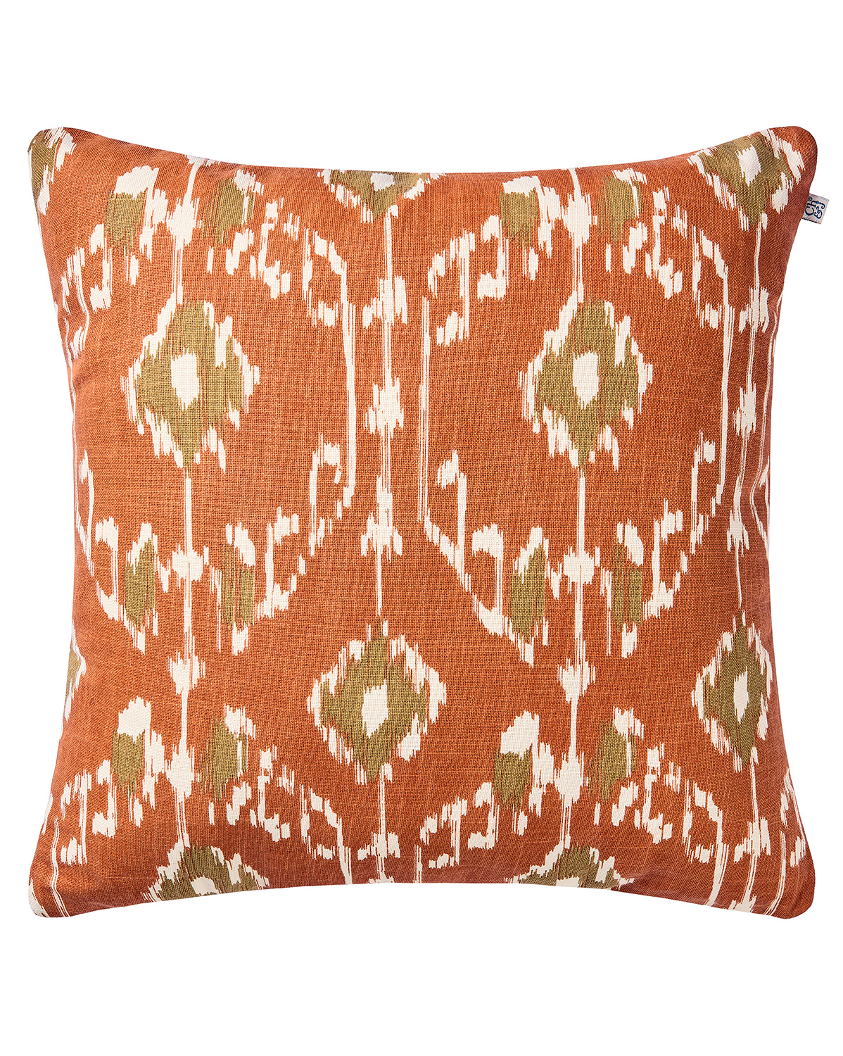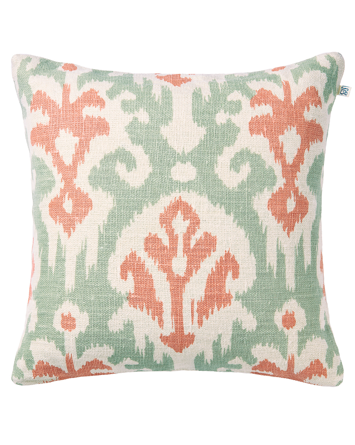 | Den mjuka gröna mattan skapar en lugn bas som lyfter fram färgerna i rummet. Kuddar i orange, turkosblå och naturtoner väcker liv med sina grafiska och handtryckta mönster. Ett samspel mellan tradition och modernitet som ger soffhörnan värme, karaktär och personlighet. |